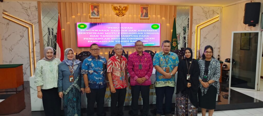 Cirebon, 15 Mei 2025 – Pengadilan Negeri Cirebon menerima kunjungan dari Tim Pengadilan Tinggi Bandung dalam rangka pelaksanaan kegiatan Pengawasan Daerah dan Asesmen Sertifikasi Mutu Peradilan Unggul dan Tangguh (AMPUH). Kegiatan ini dilaksanakan di Ruang Media Center Pengadilan Negeri Cirebon dan dihadiri oleh jajaran aparatur Pengadilan Negeri Cirebon