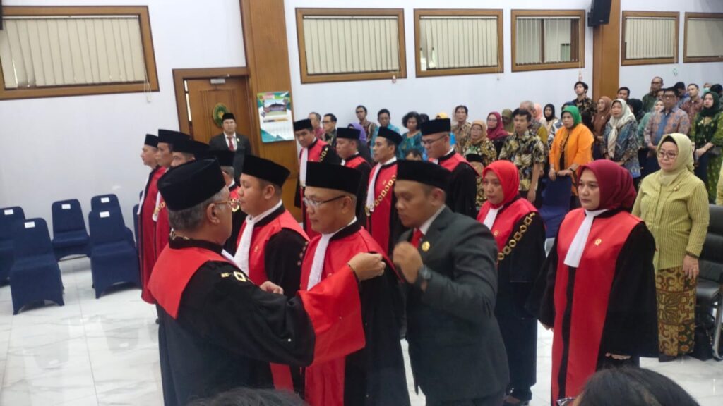 Acara Pelantikan dan Pengambilan Sumpah dimulai dengan Pembacaan Surat Keputusan Direktur Jenderal Badan Peradilan Umum Mahkamah Agung RI, dilanjutkan dengan pengambilan sumpah oleh Bapak Ketua Pengadilan Tinggi Bandung, kemudian penandatanganan Berita Acara Sumpah oleh pejabat yang baru disumpah dan dilanjutkan dengan saksi-saksi.