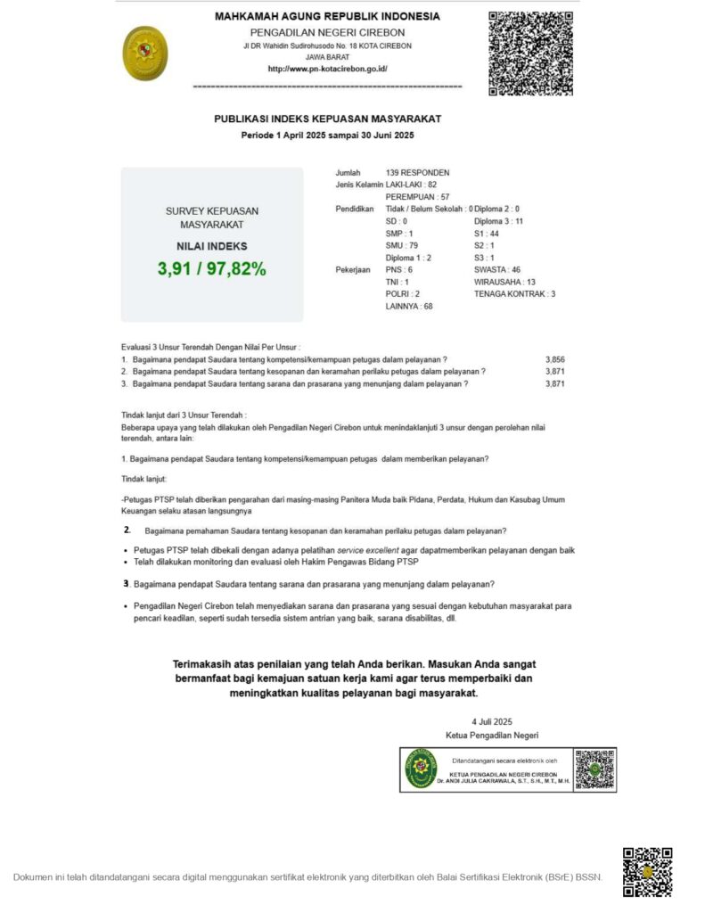 Laporan Monitoring dan Evaluasi atas Indeks Kepuasan Masyarakat (IKM) Triwulan II Tahun 2025,  Klik – Download e-Doct