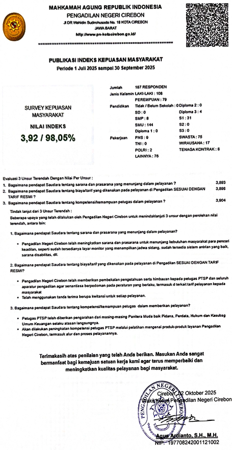 INDEKS KEPUASAN MASYARAKAT (IKM) TRIWULAN III TAHUN 2025